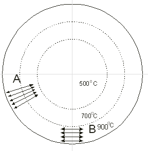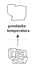 Pri segrevanju in ohlajanju izdelkov so temperature na površini in v notranjosti izdelkov zelo različne. Te razlike naraščajo z večanjem hitrosti segrevanja in ohlajanja. Na temperaturne razlike vpliva tudi toplotna prevodnost materiala in velikost izdelkov. Posledica temperaturnih razlik je termično raztezanje in s tem pojav notranjih napetosti med posameznimi deli presekov. Večje notranje napetosti zmanjšujejo trdnost ter povzročajo deformacije in nastanek notranjih razpok. Na skici so narisane napetosti in razpoke, ki se pojavijo: