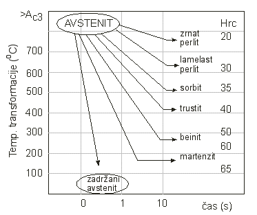 Pri ohlajanju se lahko avstenit spremeni v različne strukture. Katere strukture nastanejo je odvisno od temperature transformacije. Na temperaturo transformacije vplivamo s hitrostjo ohlajanja (HO). Pri manjših HO se transformacija izvrši pri višjih, pri velikih HO pa pri nižjih temperaturah.