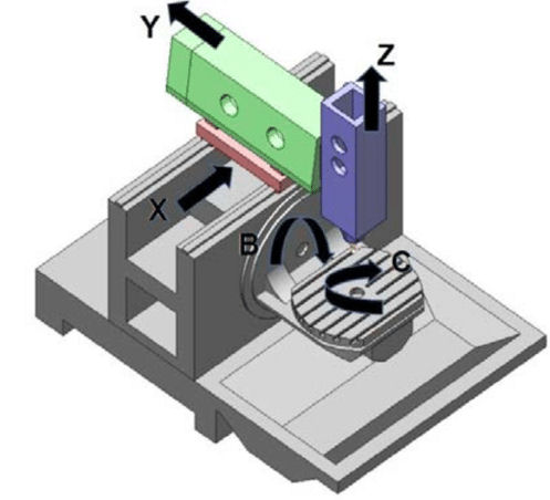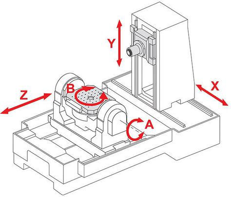 5-osni stroji lahko uporabljajo kateri koli dve rotacijski osi hkrati, odvisno od konfiguracije stroja. To je bodisi A-os in C-os, bodisi B-os in C-os.