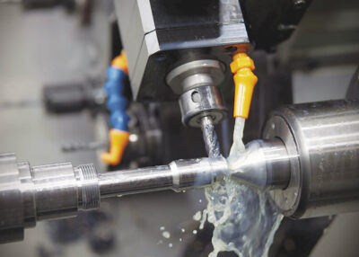 - Hladilno-mazalni sistem: hladilno-mazalna sredstva se ponavadi vodijo skozi orodje naravnost do predela hlajenja in mazanja; zrak, ki ob vpenjalu priteka iz šob, služi za odnašanje odrezkov in hladilno mazalnih sredstev.
