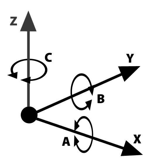 Vsaka komponenta se lahko premika v 6 različnih smereh. Teh 6 prostostnih stopenj predstavlja 3 translacije (x,y,z) in 3 rotacije (A,B,C)