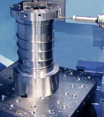 V 5-osnem CNC stroju se lahko vrtenje izvede bodisi z vretenom bodisi z obdelovancem.