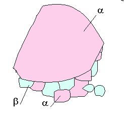 Pri evtetski temperaturi (Te ) tekoča raztopina izkristalizira v mehansko zmes kristalov α in β