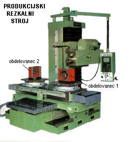 Na delovno mizo pritrdimo po dva obdelovanca 1 in 2, ki ju nato rezkamo z enim rezkalom. Ko stroj obdeluje en obdelovanec, drugega zamenjamo s še neobdelanim kosom, da ne izgubljamo nepotrebnega časa.