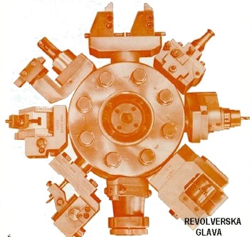 V glavo vpnemo orodja že pred delom, zato jih med delom ni potrebno snemati in ponovno vpenjati, ampak glavo zavrtimo za določen kot, da pride sledeče orodje v delovni položaj. Zahtevani premer obdelovanca je določen že z samim položajem orodja v revolverski glavi in zato posebno nastavitveno gibanje ni potrebno.