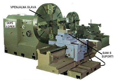 Uporabljamo jo za obdelavo predmetov, ki imajo večji premer (1500 mm in več) in majhno debelino (do 400mm). Glavno vreteno je vodoravno, sani in postelja sta lahko ločeni od vretenjaka. Prednost je v tem, da imamo dober pregled nad delom in odstranjevanje ostružkov ni težavno. Glavni pomanjkljivosti sta, da je vpenjanje velikih predmetov težko ter da ni posebno natančna, ker je glavno vreteno neugodno obremenjeno.