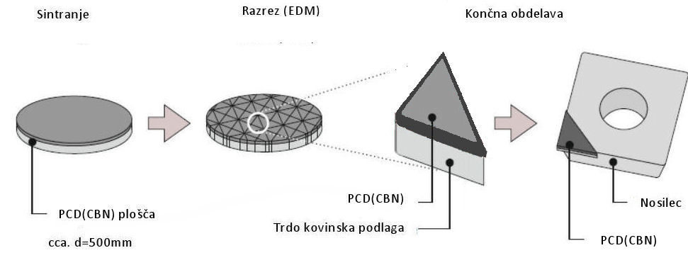 Izdelava ploščic iz CBN materiala poteka v 4 fazah: