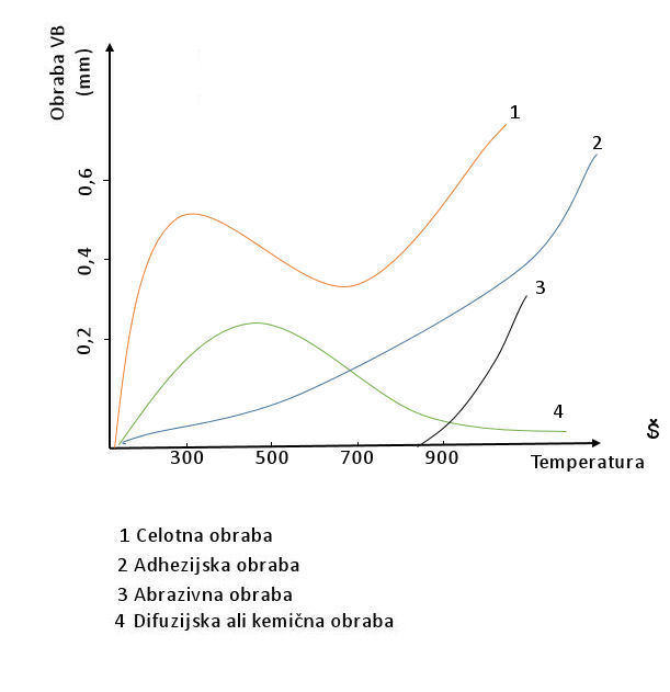 Obraba je v veliki meri odvisna od najvišje temperature na rezalnem robu orodja.