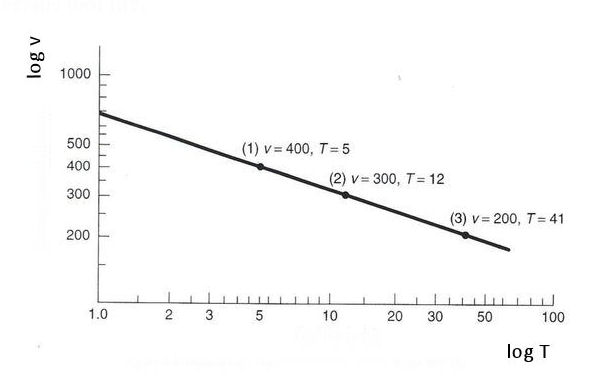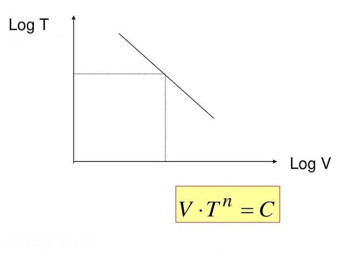 Orodje je maksimalno obrabljeno, ko je dosežena določena obraba proste ploskve. Pripadajočo obstojnost orodja lahko tedaj odčitamo na osi y. Razmerje med rezalno hitrostjo vc in obstojnostjo orodja prikazuje diagram v dvojno logaritmičnem koordinatnem sistemu- Krivulja obstojnosti je eksponentna in če to logaritmiramo dobimo linearno povezanost