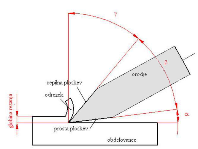 Eno prvih orodij za odrezavanje je bil klin  za katerega je že značilna osnovna geometrija rezalnih orodij: