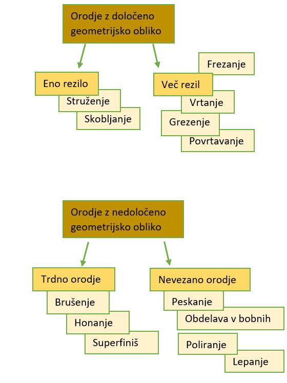 Poznamo več različnih postopkov odrezavanja. Na izbiro postopka, po katerem bomo obdelovali kak izdelek, vplivata predvsem geometrijska oblika in material obdelovanca. Pogosto lahko isti izdelek izdelamo na različne načine; v tem primeru je potrebno upoštevati predvsem ekonomičnost obdelave in tehnološko opremljenost podjetja. Vsekakor je potrebno pri velikih serijah narediti podrobnejšo analizo in se pri tem opirati predvsem na lastne izkušn