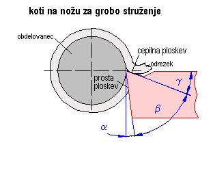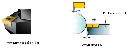 Dva pomembna kota sta kot klina β in kot pri vrhu ε, ki vplivata na delovanje rezalnega orodja na dva načina: večja ko sta, močnejši je rezalni rob in boljše je odvajanje toplote oz. hlajenje rezalnega roba.