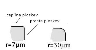 Če je rezalni rob zaokrožen, je podan radij zaokrožitve r, ki je med 7 in 30 µm (tega ne smemo zamenjati z radijem konice, ta pa je lahko par mm). Geometrija rezalnega roba je odločilna za njegovo trdnost in zelo vpliva na obstojnost rezalnega orodja.