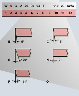Rezalna ploščica , ki ima prosti kot nič je ploščica z negativno geometrijio, zanjo se uporablja tudi posebno držalo, uporabimo jo lahko na obeh straneh. Držalo je nagnjeno, tako da postane prosti kot pozitiven, cepilni pa negativen, zato je to ploščica z negativno geometrijo. Oznaka ploščice je N.