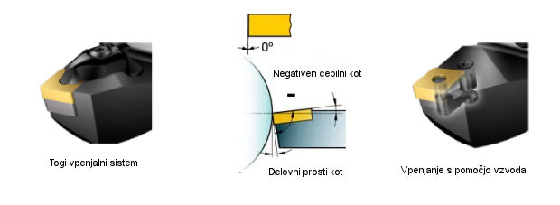 Prednosti | majhne rezalne sile preprosto odvajanje odrezkov manj vibracij | močan rezalni rob več rezalnih robov na ploščico dober nadzor nad odrezki |