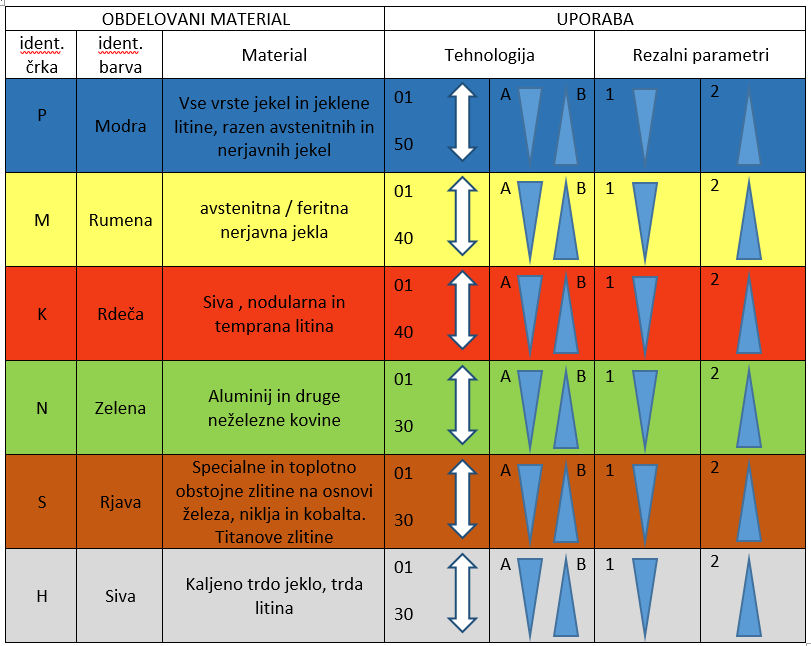 Osnovne smernice za strojno obdelavo materialov ISO P, npr. strojna obdelava jekla: