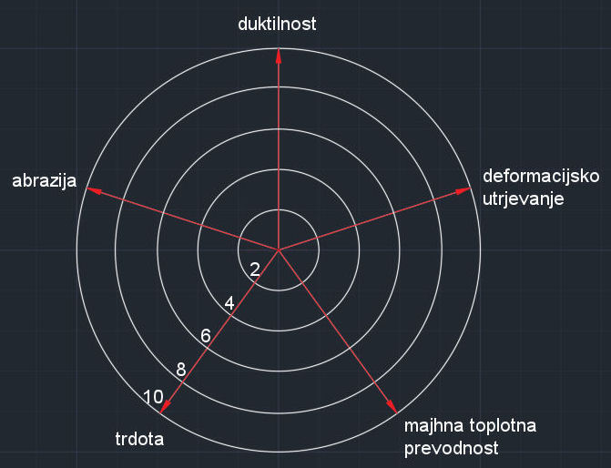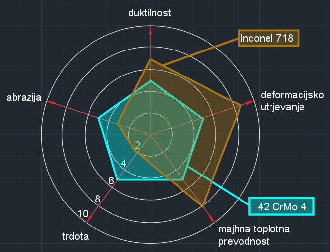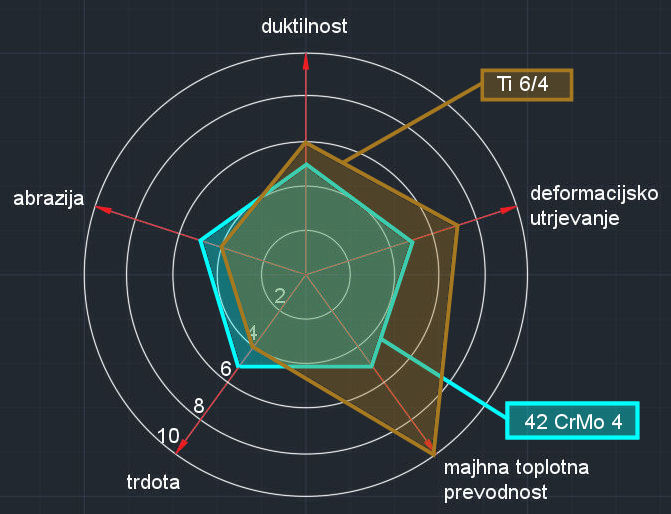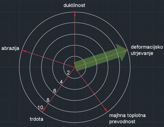 - Titan in njegove zlitine: Slaba toplotna prevodnost in visoka trdnost povzročata težave pri obdelavi.