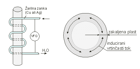 Za serijsko delo je najbolj primerno induktivno kaljenje. Visokofrekvenčni električni tok, ki teče po ˝žarilni˝ zanki, ustvarja spremenljivo magnetno polje. Sprememba magnetnega polja povzroča induciranje el. toka na površini izdelka. Globina do katere tečejo inducirani – vrtinčasti tokovi je odvisna od frekvence. Z izbiranjem ustrezne frekvence se lahko izbira želena globina segrevanja izdelka.