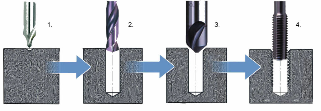 8. Zagotovit je potrebno tekoč vstop navojnega svedra v izvrtino, saj lahko neenakomeren pomik povzroči razširjen vhod.