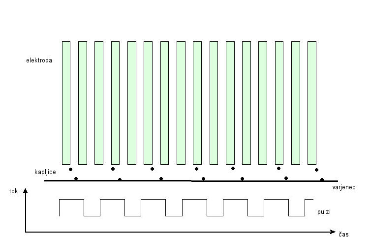 Z izbiranjem frekvence in jakosti visokofrekvenčnega toka vplivamo na velikost in čas prehoda kapljic v zvaru. Vrednosti se izbirajo tako, da se v enem pulzu prenese ena kapljica.