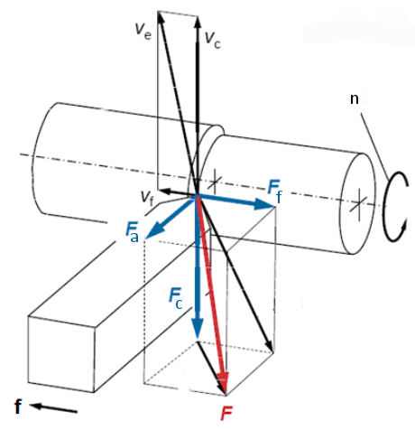 - podajalna sila Ff , deluje v nasprotni smeri podajalnega gibanja.