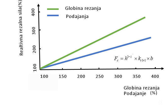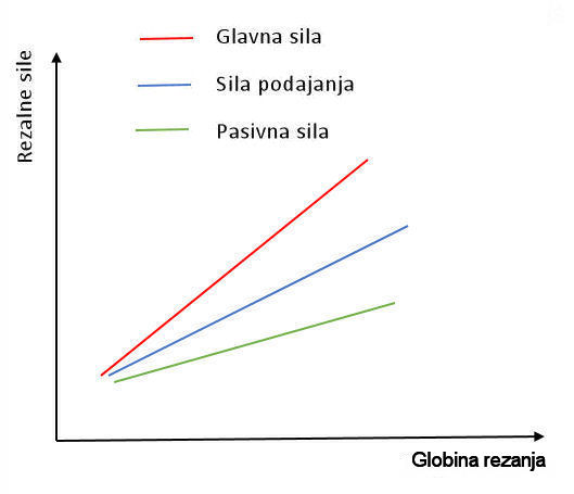 – Vpliv globine reza je linearen. Večja ko je globina reza, večje so rezalne sile.