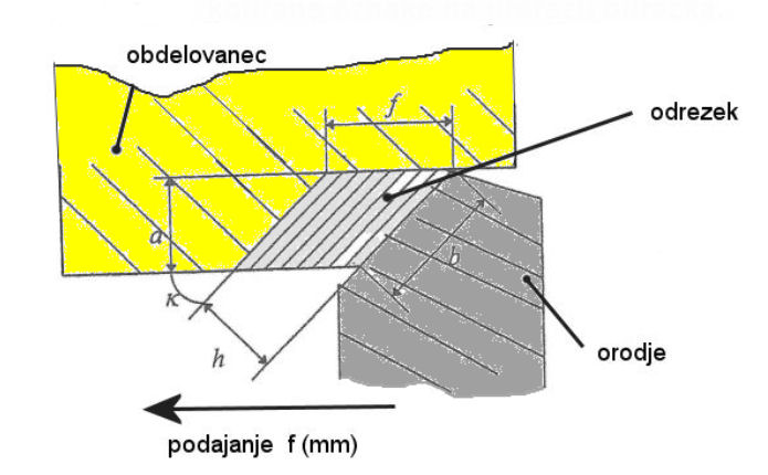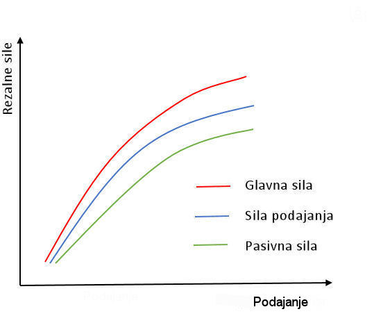 – Vpliv podajanja je eksponencialen. Večje podajanje je povezano z večjimi rezalnimi silami, odvisnost pa ni linearna.