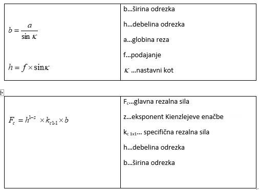 Za približno izbiro delovnih pogojev je treba vsaj približno poznati velikost in smer rezalnih sil. To je predvsem pomembno za: