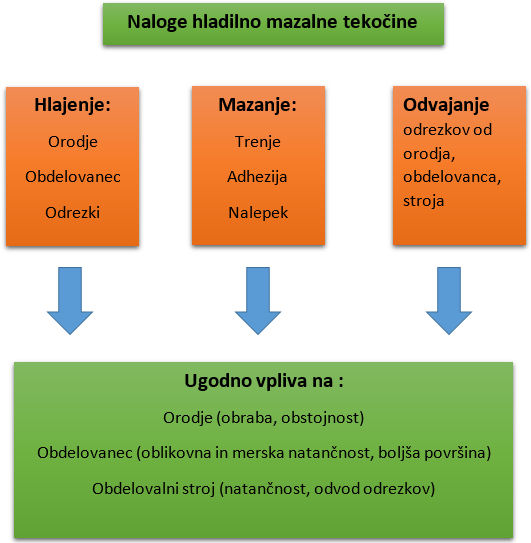 Hladilno-mazalne tekočine opravljajo naslednje funkcije: