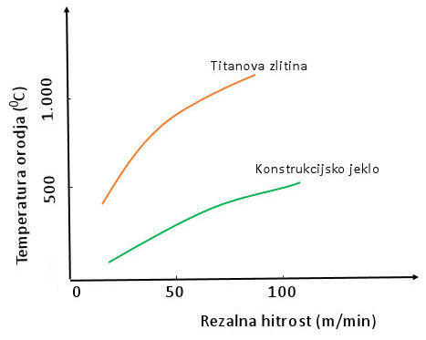 Ker ima Titan nizko toplotno prevodnost, ne gre toplota v odrezke pač pa v orodje.