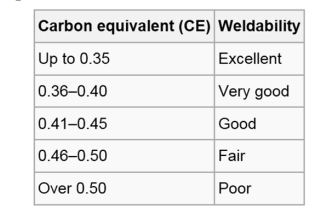 – CE≤ 0,50% za jeklo, pri kateri vsebnost C ≤ 0,12%,
