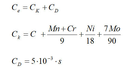 – CE≤0,45% za jeklo, v katerem je vsebnost C> 0,12%