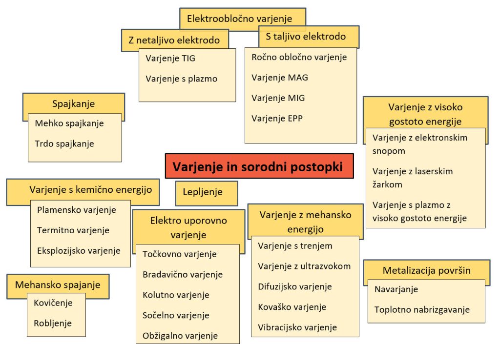 Povedali smo že, da so dobri tisti postopki varjenja, pri katerih ima nastali zvar približno enako kemično sestavo in lastnosti, kot jih ima osnovni material. Idealnega postopka ni. V praksi se uporabljajo tisti, ki so za določene izdelke najbolj primerni in ekonomsko opravičeni. Vse postopke lahko delimo glede na: