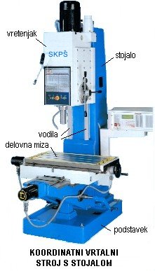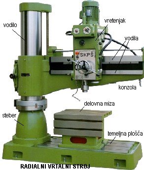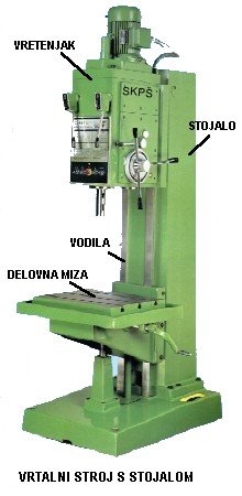 Stroj je stabilnejši in zato preciznejši od stebrnega vrtalnega stroja. Namenjen je za težje obdelovance in za vrtanje izvrtin v jeklo do 50mm. Vretenjak je aksialno pomičen po vodilih stojala, ki je iz sive litine. Stojalo je škatlaste oblike, kar daje stroju potrebno togost in zato dela izredno natančno.