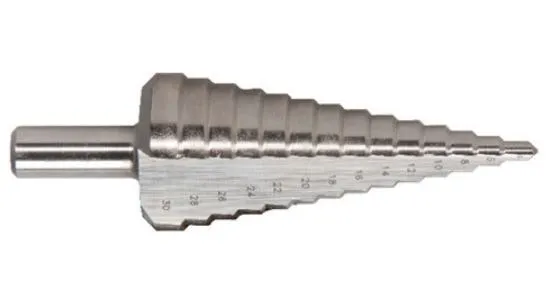 Če želite izvrtati luknje na pločevino, boste potrebovali stopničasti sveder.