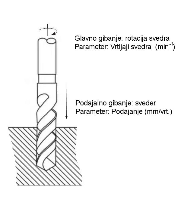 Značilno za vrtanje je, da se prerez odrezka ne spreminja med enim vrtljajem – spremenimo ga lahko le tako, da spremenimo podajanje.
