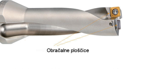 Svedri so prevrtani po celi dolžini. Skozi to izvrtino dovajamo k rezilu , hladilno tekočino pod visokim tlakom za izpiranje odrezkov in za mazanje ter hlajenje.