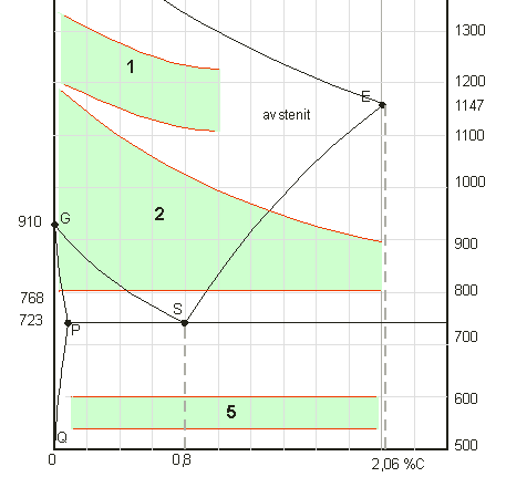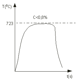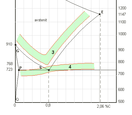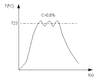 3.NORMALIZACIJSKO. Spoznali smo, da je struktura odlitkov heterogena po obliki in velikosti. Pri toplotni obdelavi lahko nastane grobozrnatost. Pri hladnem preoblikovanju lahko nastane trakasta struktura. Strukturo ponovno spremenimo v normalno velikost in obliko z normalizacijskim žarjenjem. Tehnološki postopki, pri katerih dobimo neprimerno strukturo, ki jo z normaliziranjem popravimo, so valjanje, kovanje, litje in varjenje. Normalizacija poteka pri temperaturah 30 do 50°C nad črto GOSE (ali GSK) Čas normalizacije je 1 ura za 25 mm premera.